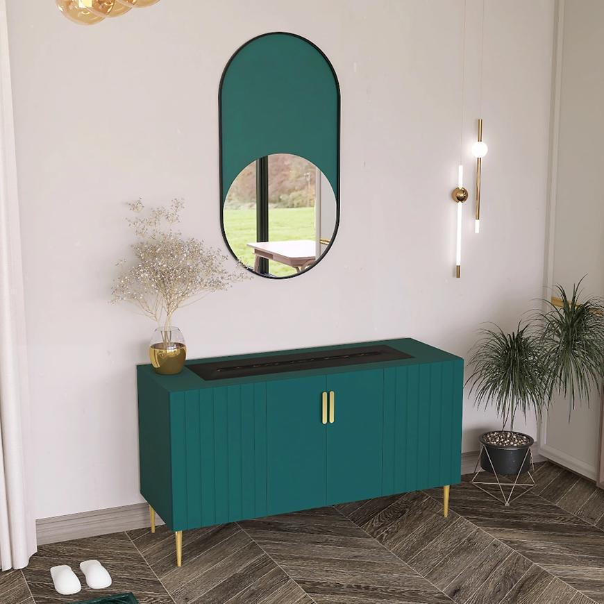 Kominek elektryczny Prins 1000 w kolorze zielonym to elegancki i designerski element wnętrza w stylu glamour, który łączy nowoczesną estetykę z imponującymi efektami wizualnymi. Matowe, zielone wykończenie nadaje wnętrzu świeży i przyciągający uwagę akcent, podkreślając charakter pomieszczenia. Kominek wykorzystuje technologię Dimplex Cassette 1000 Retail Opti-Myst®, oferując realistyczny efekt płomienia przy poborze energii 450 W. Dodatkowe funkcje, takie jak miejsce do przechowywania oraz energooszczędne oświetlenie LED, zwiększają jego funkcjonalność, a wbudowany emulator dźwięku i pilot zdalnego sterowania zapewniają wygodę użytkowania. Solidna konstrukcja o wymiarach 780 × 1400 × 500 mm i wadze 56 kg gwarantuje stabilność i trwałość, czyniąc Prins 1000 zielony efektownym i praktycznym rozwiązaniem do wnętrz w stylu glamour.