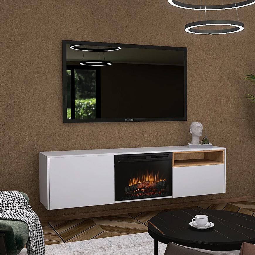 Kominek elektryczny Tecero 26" w wykończeniu biały/dąb to nowoczesne i funkcjonalne urządzenie, które łączy elegancki design z możliwością efektywnego ogrzewania pomieszczeń. Matowa powierzchnia w połączeniu z elementami w kolorze dębu nadaje wnętrzu ciepły i stylowy charakter, idealnie wpisując się w współczesne aranżacje salonu. Kominek wykorzystuje technologię Dimplex Optiflame®, generując realistyczny efekt płomienia przy minimalnym poborze energii – zaledwie 7 W. Model posiada funkcję grzewczą o mocy 1400 W, pozwalając na ogrzewanie pomieszczeń do 14 m², z regulacją temperatury w zakresie 17–26°C za pomocą elektronicznego termostatu. Dodatkowe funkcje obejmują regulator czasowy i energooszczędne podświetlenie LED, a wygodę użytkowania zapewnia pilot zdalnego sterowania. Solidna konstrukcja o wymiarach 518 × 2030 × 423 mm i wadze 40 kg gwarantuje stabilność i trwałość, czyniąc Tecero 26" biały/dąb połączeniem nowoczesnego stylu, funkcjonalności i komfortu użytkowania.