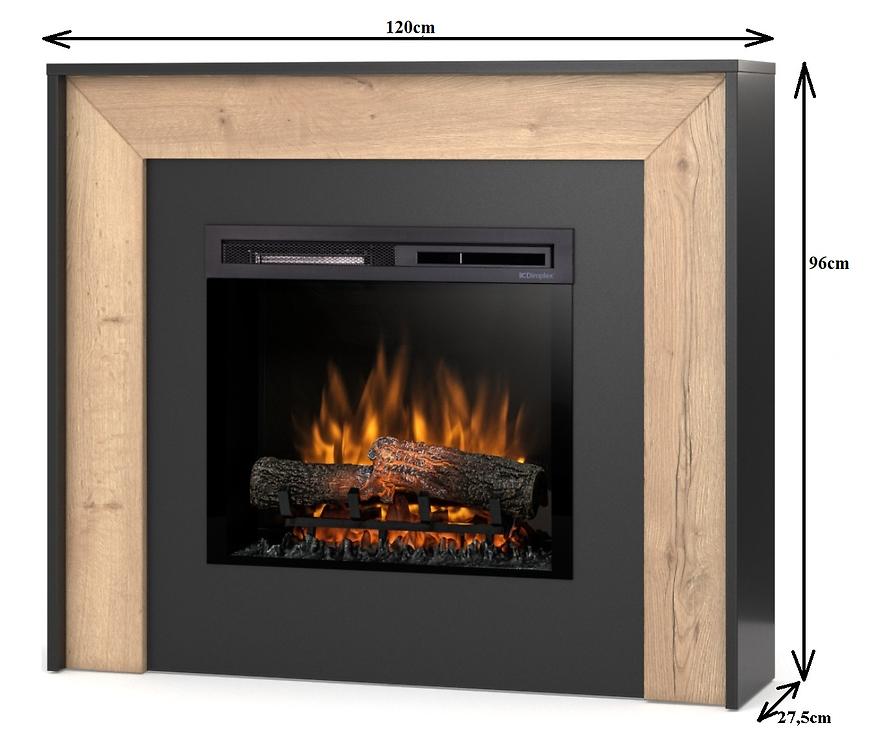 Kominek elektryczny Zuni 26 czarny/dąb to nowoczesny model łączący elegancką czerń z ciepłymi elementami dębu, idealny do współczesnych wnętrz. Matowe wykończenie podkreśla minimalistyczny charakter, a efekt płomienia Dimplex Optiflame® tworzy przytulną atmosferę, zużywając przy tym zaledwie 7 W w trybie dekoracyjnym.