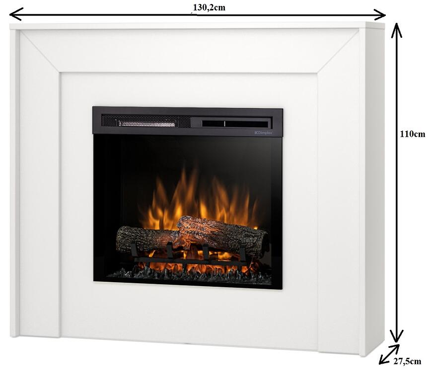 Urządzenie ma wymiary 1100 × 1302 × 275 mm i waży 56 kg, oferując moc nominalną 1,4 kW, co pozwala ogrzać powierzchnię do 14 m². Temperaturę można regulować w zakresie 17–26°C dzięki elektronicznemu termostatowi, a dodatkowe funkcje, takie jak regulator czasowy, technologia LED oraz pilot zdalnego sterowania, umożliwiają wygodne sterowanie kominkiem z dowolnego miejsca w pomieszczeniu.