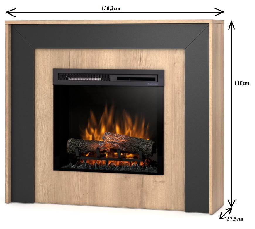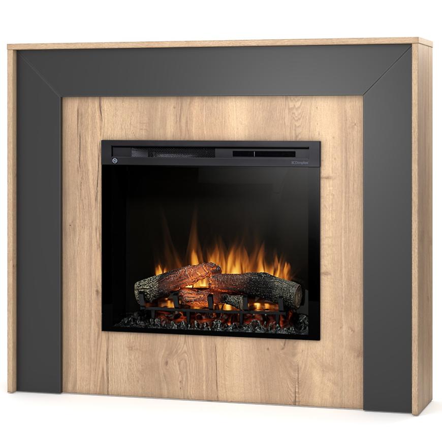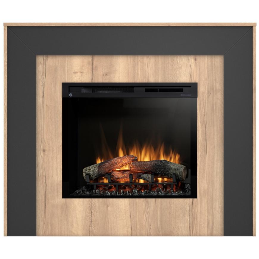 Kominek elektryczny Zuni 28 jasny dąb/czarny to nowoczesny model łączący elegancję czerni z ciepłymi elementami w kolorze jasnego dębu. Stylowa obudowa w wykończeniu matowym świetnie wpisuje się w nowoczesne wnętrza, a realistyczny efekt płomienia Dimplex Optiflame® tworzy przytulną atmosferę bez konieczności używania grzania, przy minimalnym zużyciu energii – zaledwie 7 W w trybie dekoracyjnym.