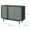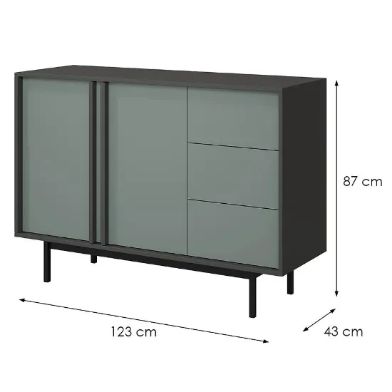 Komoda Alsy 7 o szerokości 120 cm w nowoczesnym połączeniu kolorów Aloes i Antracyt to stylowy i funkcjonalny mebel. Wyposażona w praktyczne szafki i szuflady, doskonale sprawdzi się w salonie, sypialni lub przedpokoju, dodając wnętrzu świeżości i nowoczesnego charakteru.