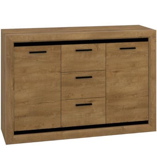 Komoda 138 Baltica to niepozorny ale bardzo praktyczny i pakowny mebel do pokoju dziennego czy sypialni. Swoją prostotą i klasycznym kształtem na pewno uraczy miłośników stylu loftowego, klasycznego czy vintage. Czarne elementy wykończeniowe z pewnością nadają jej charakteru i przełamują odcień dębu. Komoda posiada 3 wysuwane szuflady i dwie szafki, a dodatkowo spora powierzchnia blatu pozwoli wyeksponować pamiątki z ostatnich wakacji, rodzinne zdjęcie czy lampkę nocną. Mebel do samodzielnego montażu.