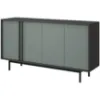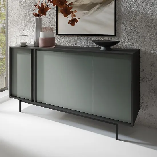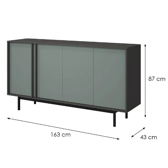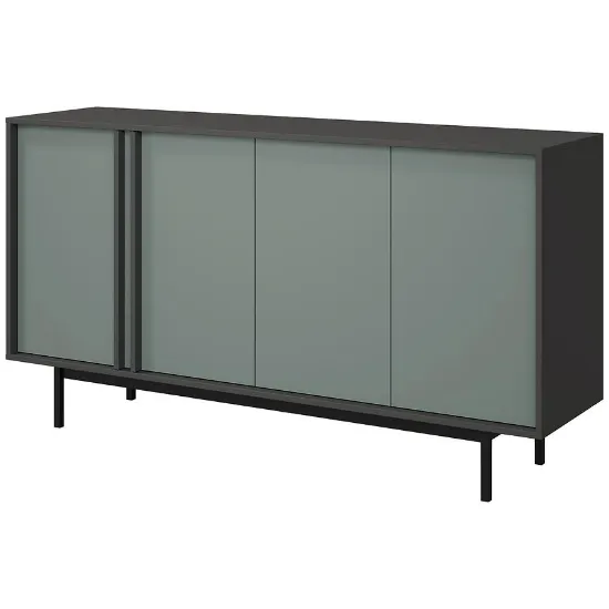 Kolekcja Alsy to propozycja dla osób, które chcą nadać swojemu pokojowi dziennemu wyjątkowy charakter. Połączenie głębokiego zielonego odcienia aloes na frontach z eleganckim antracytem korpusów tworzy wyrazisty kontrast, który staje się centralnym punktem aranżacji. Minimalistyczne formy, matowe wykończenie oraz solidne, wysokie metalowe nóżki sprawiają, że meble prezentują się nowocześnie, a jednocześnie lekko.