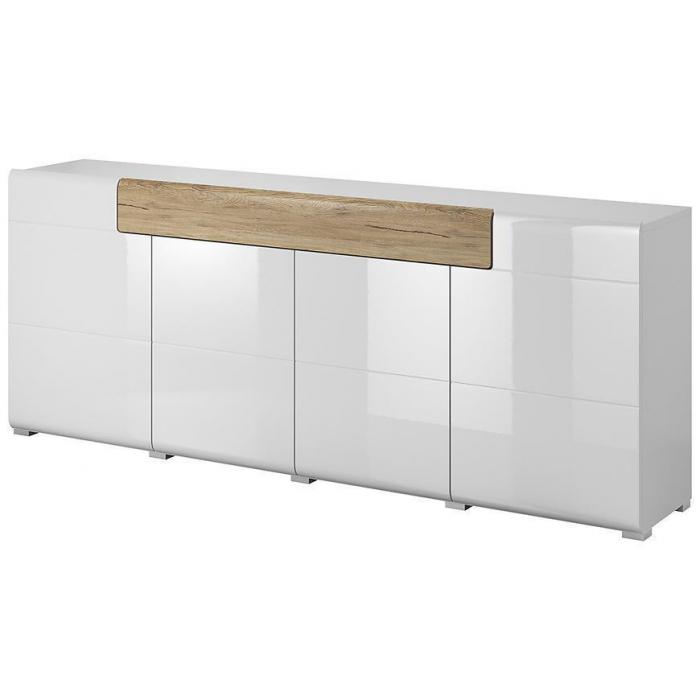Doskonałym wyborem do pokoju dziennego będzie komoda w kolorze białym/dąb san remo z serii Toledo, materiał wykonania to płyta MDF. Komoda posiada szafki oraz szuflady dzięki czemu ma łatwy dostęp do wnętrza. Komoda dopełni również wystrój salonu, czy przedpokoju, stanowiąc wygodne miejsce do przechowywania mniejszych i większych rzeczy. Mebel do samodzielnego montażu.
