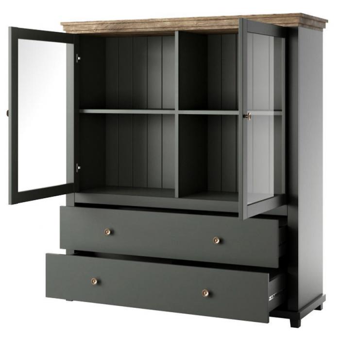 Doskonałym wyborem do pokoju dziennego będzie komoda w kolorze Dąb Lefkas/Zielony z serii Evora , materiał wykonania to płyta MDF. Komoda posiada szafki oraz szuflady dzięki czemu ma łatwy dostęp do wnętrza. Komoda dopełni również wystrój salonu, czy przedpokoju, stanowiąc wygodne miejsce do przechowywania mniejszych i większych rzeczy. Mebel do samodzielnego montażu.
