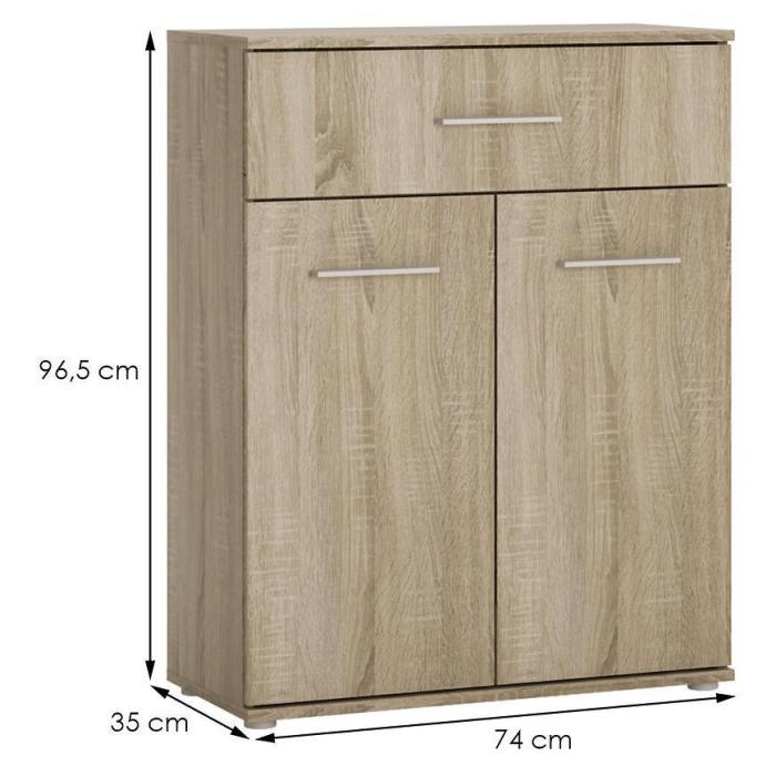 Komoda Gemini w kolorze sonoma to przede wszystkim nowoczesność i funkcjonalność w jednym. Mebel doskonale sprawdzi się w każdym salonie. Materiał wykonania to płyta wiórowa laminowana. Komoda posiada jedną szufladę i dwie szafki dzięki czemu ma łatwy dostęp do wnętrza. Wygląd mebli jest nowoczesny, a zarazem uniwersalny. Mebel będzie pasował do wielu pomieszczeń jak np. jadalni czy pokoju dziennego. Meble jest bardzo pojemny, dlatego sprawdzi się w każdym pomieszczeniu - zarówno w sypialni, pokoju dziennym, młodzieżowym, czy też salonie. Mebel do samodzielnego montażu.