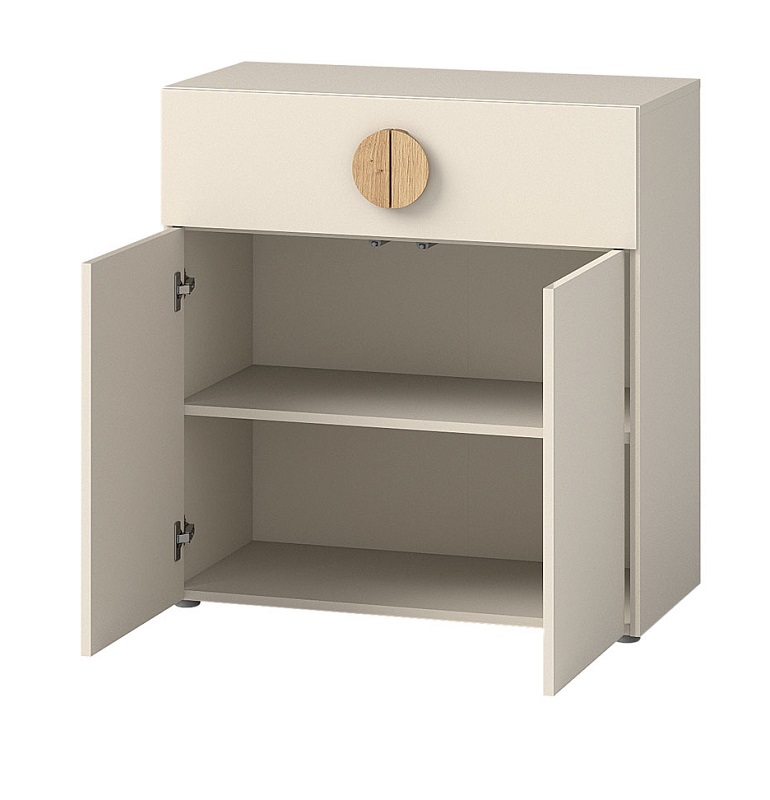 Komoda dwudrzwiowa Melo ME5 to niezwykle praktyczny i stylowy element kolekcji mebli dedykowanych do pokoju młodzieżowego. Jej wykonanie z wysokiej jakości płyty meblowej zapewnia nie tylko trwałość, ale także estetykę, którą docenią miłośnicy nowoczesnego designu. Kolor cashmere nadaje komodzie eleganckiego charakteru, harmonijnie wpisując się w różnorodne aranżacje wnętrz.
