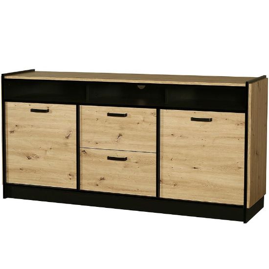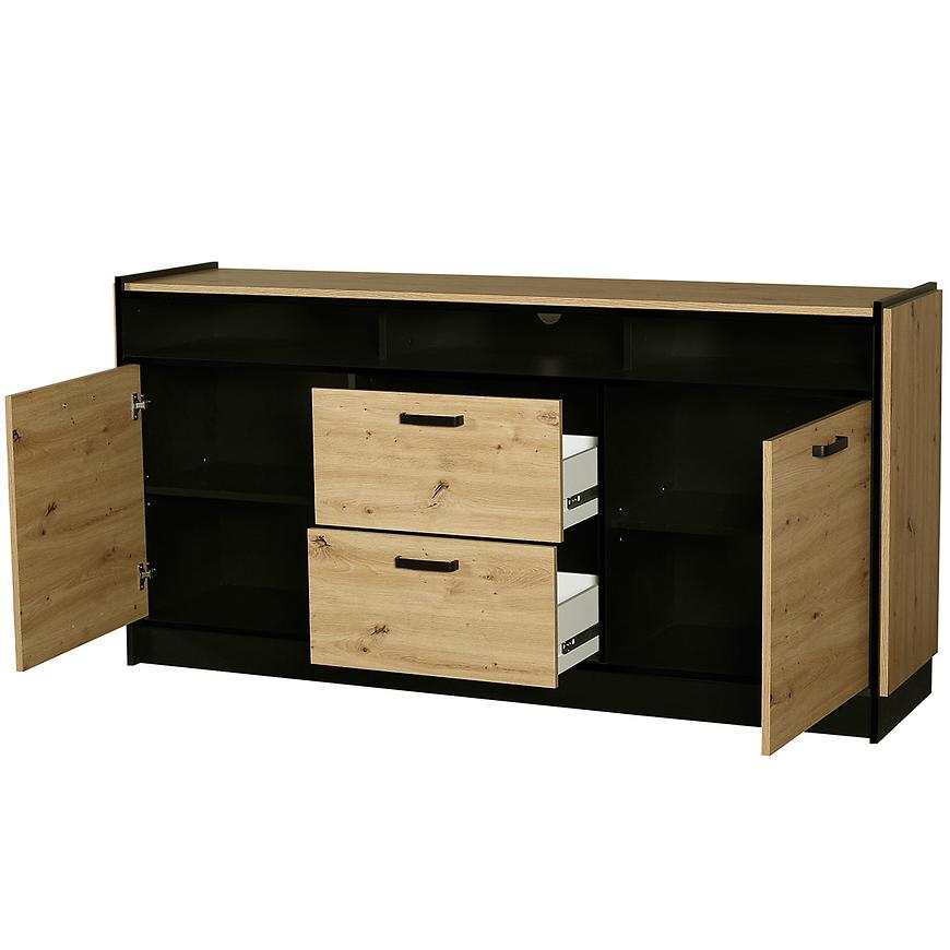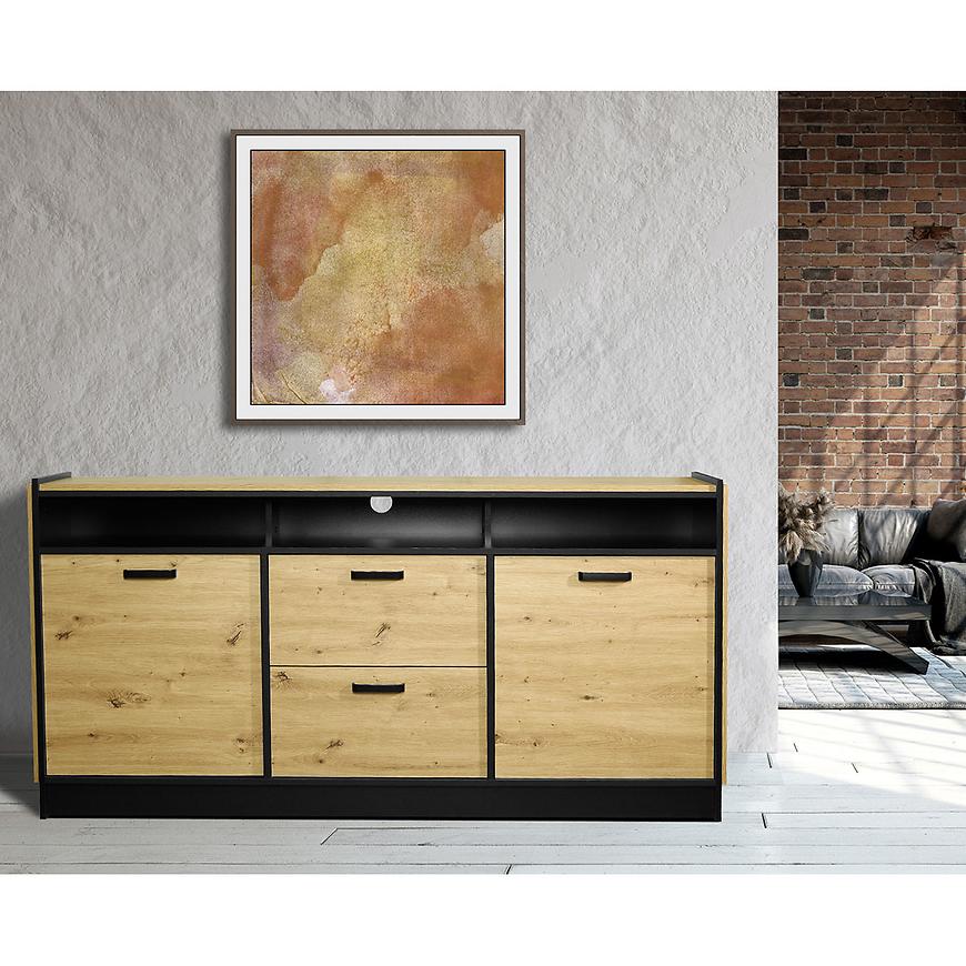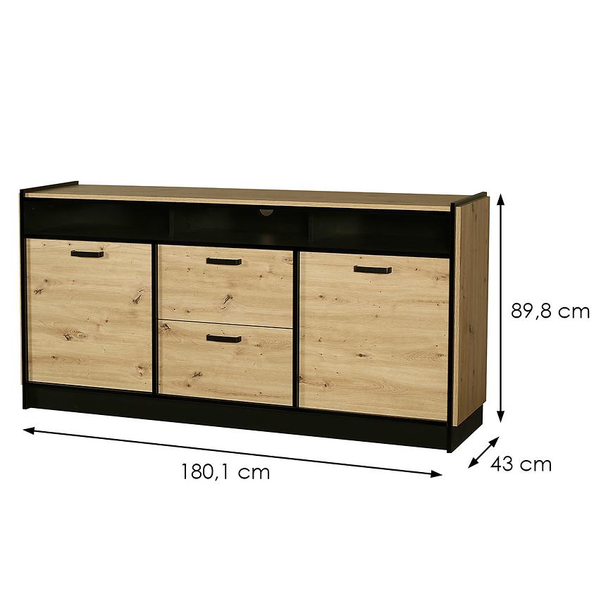 Wyjątkowy design oparty jest na drewnopodobnym wybarwieniu w odcieniu dąb artisan z elementami w czarnym kolorze, co nadaje meblowi elegancji i nowoczesnego charakteru. Matowe wykończenie nie tylko podkreśla estetykę mebla, ale także zapewnia mu trwałość i odporność na uszkodzenia.