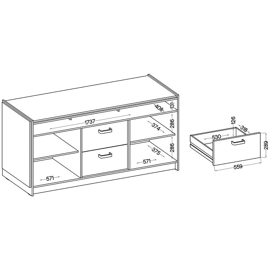 Komoda składa się z jdwudrzwiowego segmentu, co ułatwia dostęp do jej wnętrza, oraz dwóch pojemnych szuflad, które pozwalają na przechowywanie różnorodnych rzeczy, od ubrań po drobne przedmioty. To mebel, który doskonale sprawdzi się zarówno w sypialni, salonie, jak i innych pomieszczeniach.