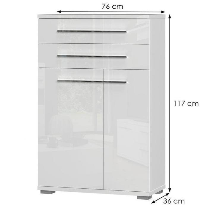 Komoda Piano w kolorze białym połysk to przede wszystkim nowoczesność i funkcjonalność w jednym. Mebel doskonale sprawdzi się w każdym salonie. Materiał wykonania to płyta wiórowa laminowana. Komoda posiada dwie szuflady oraz dwie szafki dzięki czemu ma łatwy dostęp do wnętrza. Wygląd mebli jest nowoczesny, a zarazem uniwersalny. Mebel będzie pasował do wielu pomieszczeń jak np. jadalni czy pokoju dziennego. Meble jest bardzo pojemny, dlatego sprawdzi się w każdym pomieszczeniu - zarówno w sypialni, pokoju dziennym, młodzieżowym, czy też salonie. Mebel do samodzielnego montażu.
