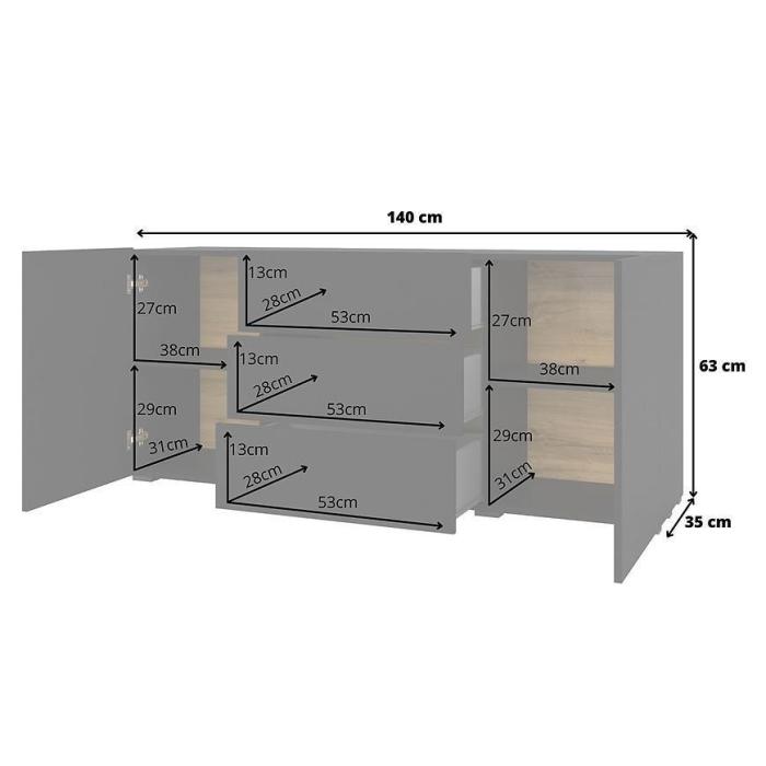 Komoda Ava wpasuje się w każdą przestrzeń. Posiada dwie zamykane szafki oraz trzy szuflady, które pozwolą na odpowiednie zagospodarowanie. Komoda doskonale odnajdzie się w każdym pomieszczeniu, również w jadalni czy salonie.