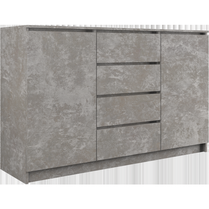 Komoda Aramis to prosta, uniwersalna i pojemna bryła, którą wyróżnia również bardzo ergonomiczna konstrukcja. Cztery szuflady umieszczonych pomiędzy dwoma parami drzwi dają wyjątkowo dużą przestrzeń do przechowywania. Komoda posiada funkcjonalny blat, który można wykorzystać np. charakterze miejsca na telewizor (szczególnie w pomieszczeniach, w których nie ma przestrzeni na tradycyjną szafkę RTV). Idealna komoda do salonu w stylu scandi lub nowoczesnej sypialni! Płyta laminowana o grubości 16 mm zapewnia solidność i wytrzymałość. Mebel do samodzielnego montażu.