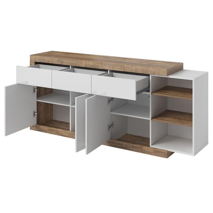 Komoda Sintra wpasuje się w każdą przestrzeń. Posiada trzy szuflady oraz trzy zamykane szafki, które pozwolą na odpowiednie zagospodarowanie. Komoda doskonale odnajdzie się w każdym pomieszczeniu, również w jadalni czy salonie.