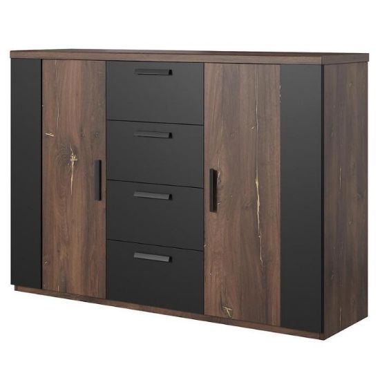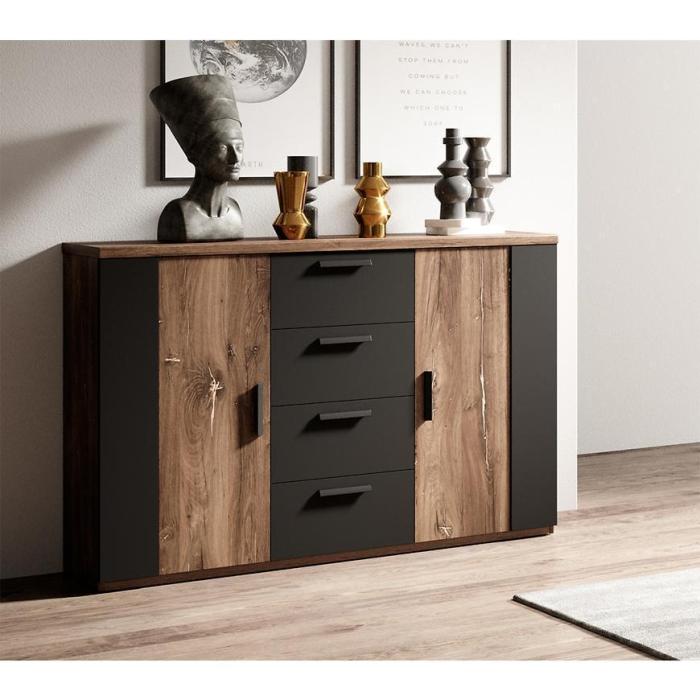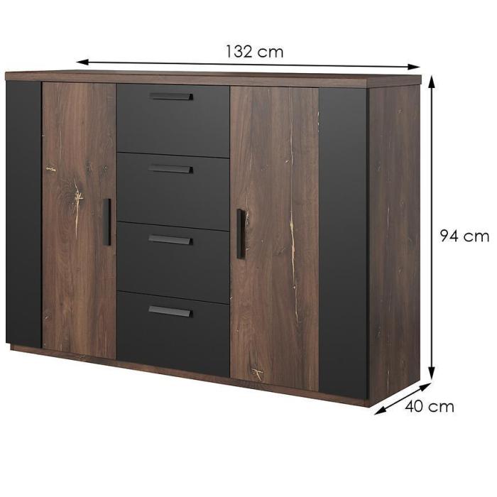 Komoda Sigma wpasuje się w każdą przestrzeń. Posiada dwie zamykane szafki oraz cztery szuflady, które pozwolą na odpowiednie zagospodarowanie. Komoda doskonale odnajdzie się w każdym pomieszczeniu, również w jadalni czy salonie.
