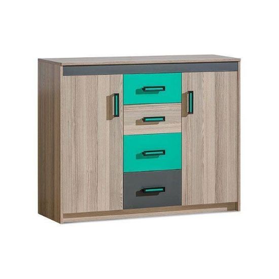 Komoda 2D4S Ultimo U11 jest propozycją funkcjonalnego oraz nowoczesnego mebla do pokoju młodzieżowego. Kolorowe wstawki przełamują klasyczną konstrukcję oraz stylistykę mebla. Model o niebanalnym wyglądzie spełnia również mnóstwo funkcji praktycznych: jest wyposażony w cztery pojemne szuflady oraz dwie szafy, do których można schować najpotrzebniejsze rzeczy. Kolorowe wstawki są w kolorze zieleni, krawędzie oklejone są obrzeżem PCV, uchwyty również wykonane są z PCV. Na blacie można ułożyć książki lub domowe dekoracje. Cała konstrukcja jest stabilna i odporna na różnego rodzaju uszkodzenia, co wpływa na komfort użytkowania przez wiele lat. Niebanalna kolorystyka energetyzuje i wprowadza do każdego wnętrza nowoczesny, młodzieżowy nastrój. Komoda 2D4S Ultimo U11 na pewno znajdzie zastosowanie w pokoju każdego nastolatka. Mebel do samodzielnego montażu. Wymiary paczek 1. 123/42/9, 2. 100/43/12