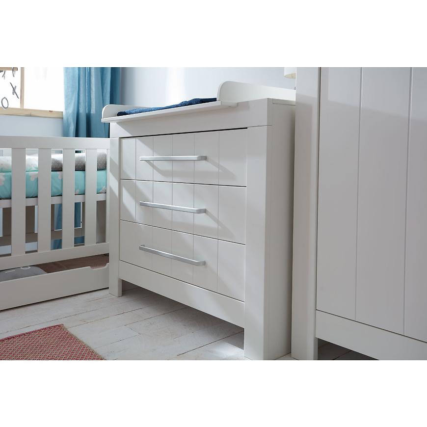 Dodatkowo, dla jeszcze większej funkcjonalności, istnieje możliwość dokupienia demontowalnej nakładki do przewijania MR-000000003322641, co czyni tę komodę jeszcze bardziej praktyczną w pierwszych latach życia dziecka.