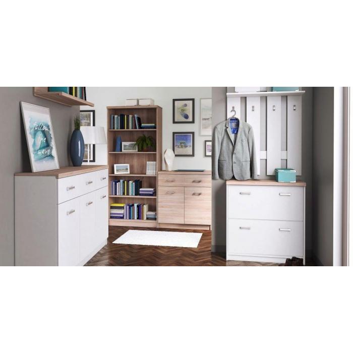 Doskonałym wyborem do pokoju dziennego będzie komoda w kolorze białym z serii Top, materiał wykonania to płyta laminowana . Komoda posiada szafki oraz szuflady dzięki czemu ma łatwy dostęp do wnętrza. Komoda dopełni również wystrój salonu, czy przedpokoju, stanowiąc wygodne miejsce do przechowywania mniejszych i większych rzeczy. Mebel do samodzielnego montażu.