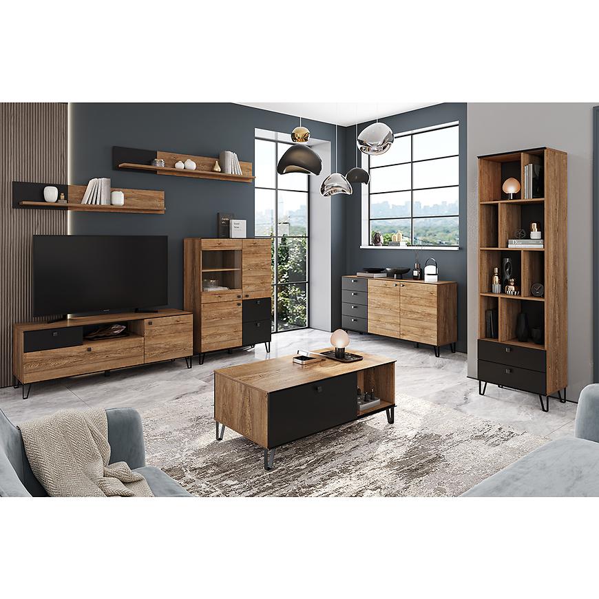 Kolekcja mebli do pokoju dziennego Weil to połączenie nowoczesności i klasycznego piękna, które sprawiają, że wnętrze nabiera wyjątkowego charakteru. Wykonane z trwałej płyty wiórowej laminowanej, meble prezentują się w pięknym dekorze burbund oak, który nadaje im ciepłego i naturalnego wyglądu. Matowe wykończenie frontów i korpusów dodaje elegancji i spokoju.
