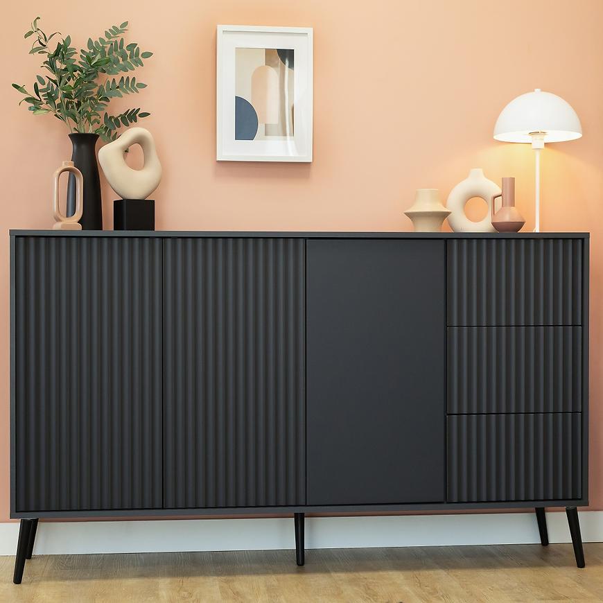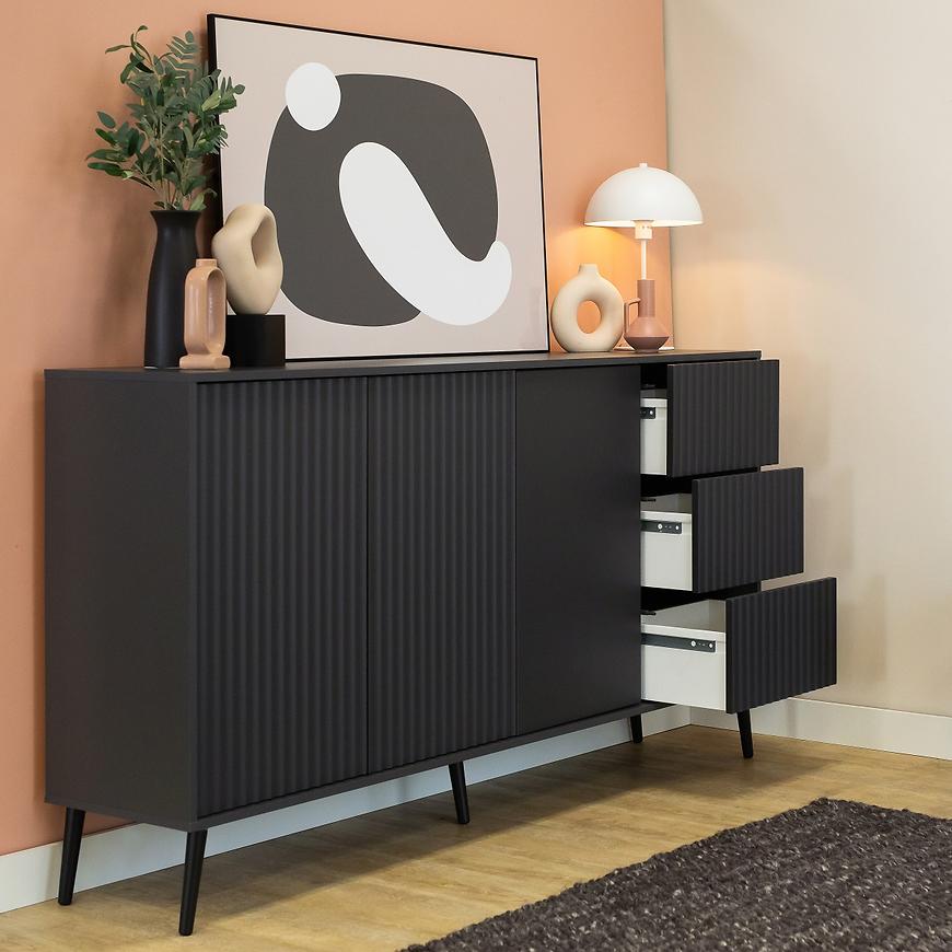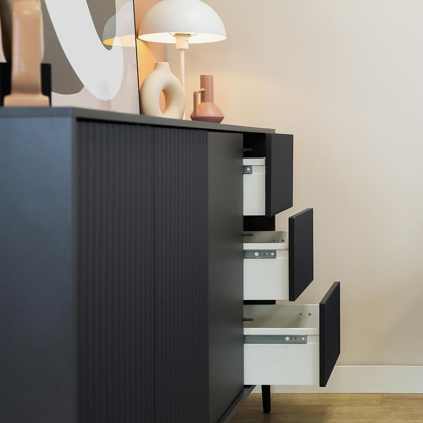 Różnorodność brył w kolekcji Barcelona pozwala na dostosowanie przestrzeni do indywidualnych potrzeb. Znajdują się w niej komody w różnych wariantach – jednodrzwiowe, dwudrzwiowe oraz dwudrzwiowe z trzema pojemnymi szufladami, które zapewniają miejsce na odzież, dokumenty czy inne domowe akcesoria.
