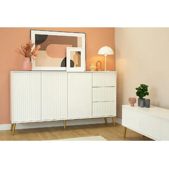 Kolekcja mebli Barcelona to doskonałe rozwiązanie dla osób ceniących nowoczesny design i elegancką estetykę wnętrz. Meble wykonane z płyty wiórowej laminowanej i MDF w dekorze białym wyróżniają się matowym wykończeniem, które nadaje pomieszczeniom wyrafinowany charakter. Kolekcja łączy funkcjonalność z minimalistycznym stylem, tworząc spójną i harmonijną aranżację pokoju dziennego.