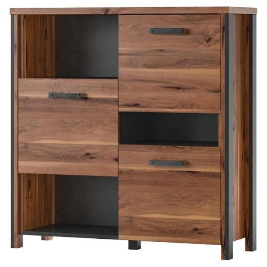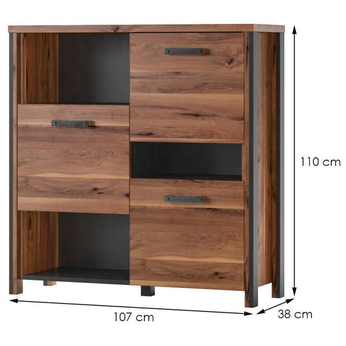 Komoda Buffalo wpasuje się w każdą przestrzeń. Posiada trzy zamykane szafki, które pozwolą na odpowiednie zagospodarowanie. Komoda doskonale odnajdzie się w każdym pomieszczeniu, również w jadalni czy salonie.