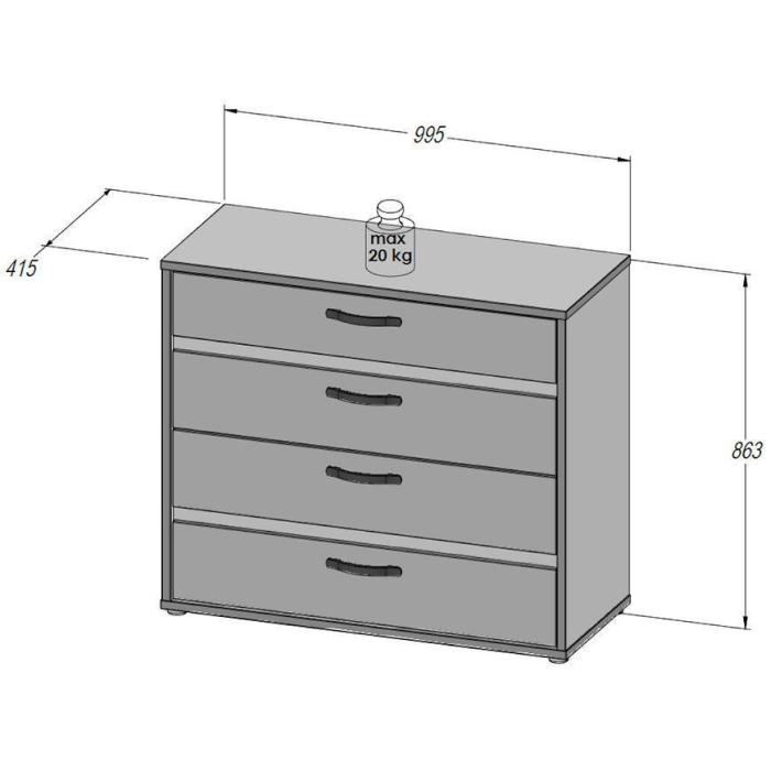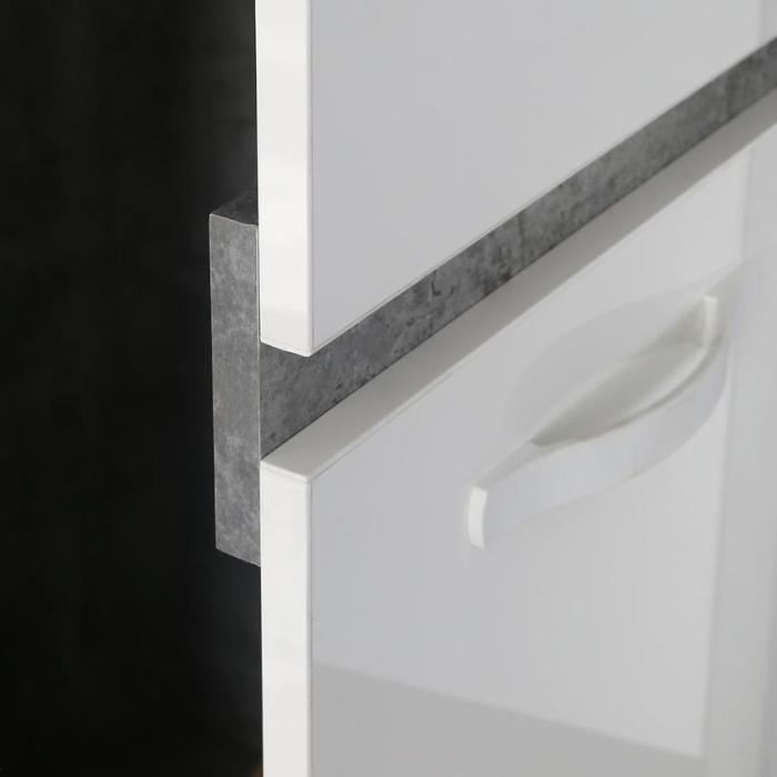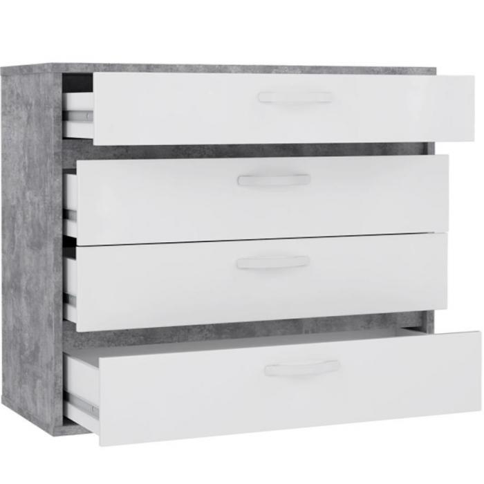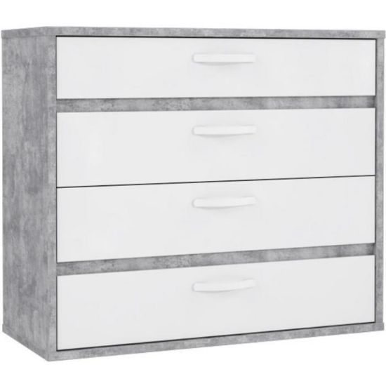 Doskonałym wyborem do pokoju dziennego będzie komoda w kolorze beton/biały z serii Canmore, materiał wykonania to płyta meblowa. Komoda posiada szuflady dzięki czemu ma łatwy dostęp do wnętrza. Komoda dopełni również wystrój salonu, czy przedpokoju, stanowiąc wygodne miejsce do przechowywania mniejszych i większych rzeczy. Mebel do samodzielnego montażu.