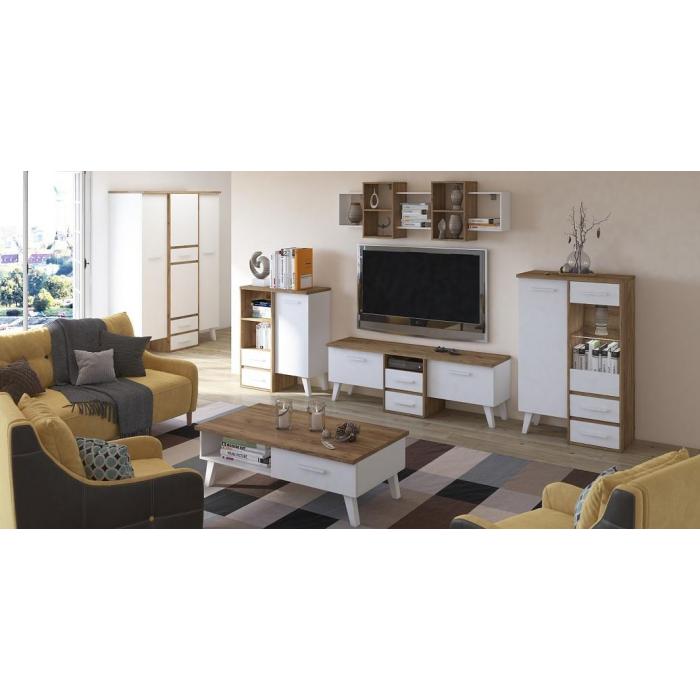 Doskonałym wyborem do pokoju dziennego będzie komoda w kolorze craft złoty/biały z serii Nordis , materiał wykonania to płyta laminowana. Komoda posiada szuflady, półki dzięki czemu ma łatwy dostęp do wnętrza. Komoda dopełni również wystrój salonu, czy przedpokoju, stanowiąc wygodne miejsce do przechowywania mniejszych i większych rzeczy. Mebel do samodzielnego montażu.