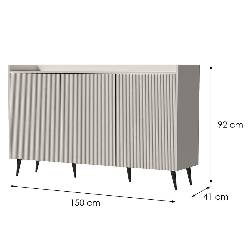 Komoda Ademo Kaszmir wykonana jest z wytrzymałej płyty wiórowej laminowanej, co gwarantuje odporność na uszkodzenia oraz łatwość w codziennym użytkowaniu. Konstrukcja wsparta na elementach z metalu zapewnia stabilność i długowieczność, co czyni z niej mebel na lata. Dzięki przemyślanej konstrukcji komoda łączy estetykę z funkcjonalnością, oferując przestrzeń do przechowywania w eleganckiej formie.