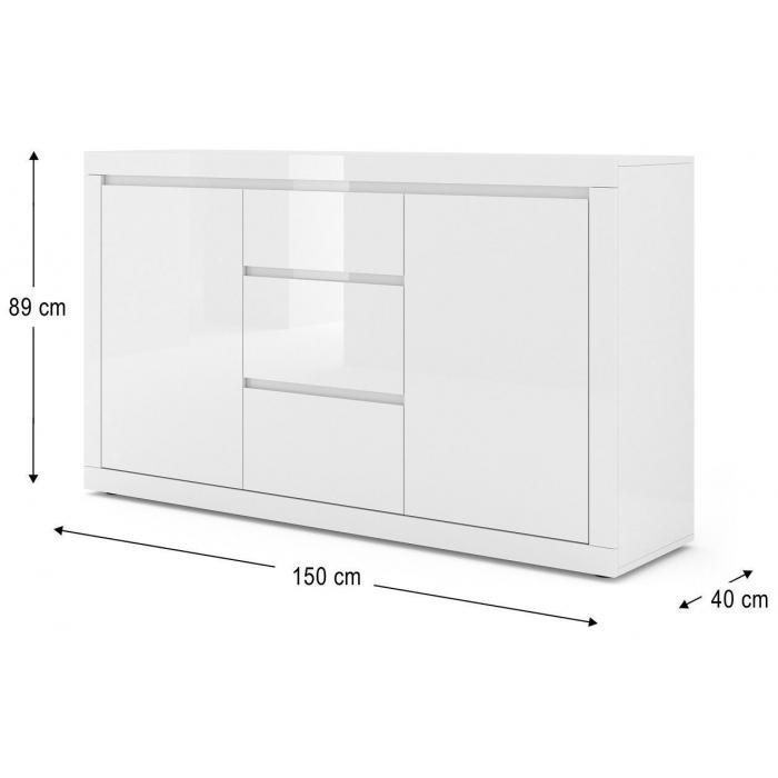 Kolekcja Adonis to meble w minimalistycznym, nowoczesnym wydaniu, które świetnie wpiszą się w każdą aranżację. Meble wykonane sa z płyty laminowanej; fronty wykończone białym połyskiem. Projekt całej kolekcji nie tylko jest bardzo funkcjonalny, ale został także przemyslany pod kątem ciekawego designu. Meble świetnie sprawdzą się w nowoczesnych wnętrzach w stylu modernistycznym. Błyszczące fronty współgrając ze światłem świetnie będą się komponować, delikatnie również rozświetlając pomieszczenie. Dodatkowym udogodnieniem jest zamontowany system cihcego domyku, umieszczony zarówno w szufladach jak i drzwiczkach