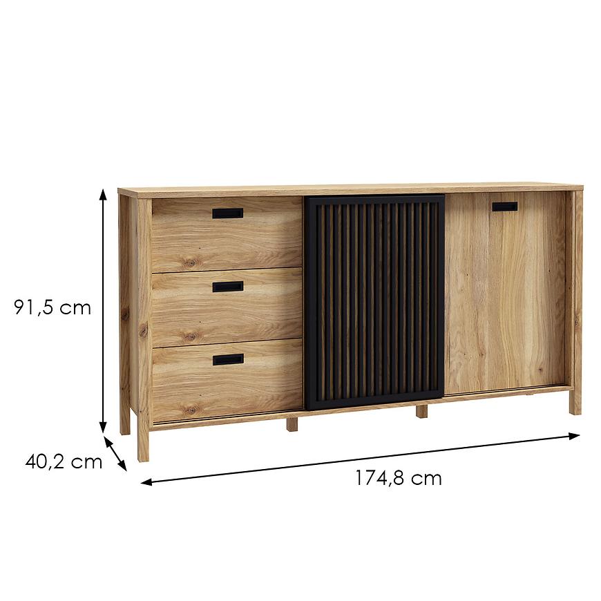 Ta elegancka komoda to doskonały dodatek do Twojego wnętrza, łączący funkcjonalność z nowoczesnym stylem. Zaprojektowana z myślą o funkcjonalności, zapewnia sporo miejsca do przechowywania.
