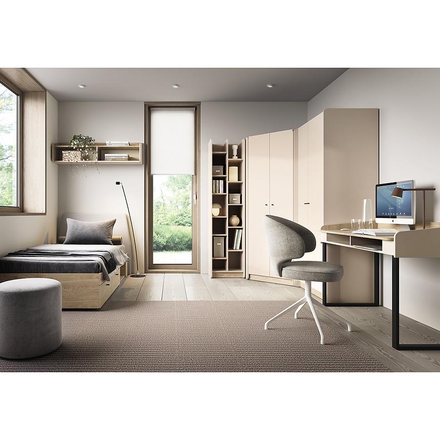 System Alessio beż piaskowy to kompleksowa kolekcja mebli młodzieżowych, stworzona z myślą o komfortowej i estetycznej aranżacji pokoju młodzieżowego. Jasny, delikatny odcień beżu wprowadza do wnętrza spokój i naturalne ciepło, sprzyjając koncentracji podczas nauki, relaksowi oraz kreatywnej aktywności. Kolekcja łączy nowoczesny design z praktycznymi rozwiązaniami, które pomagają utrzymać porządek w pokoju młodzieżowym.