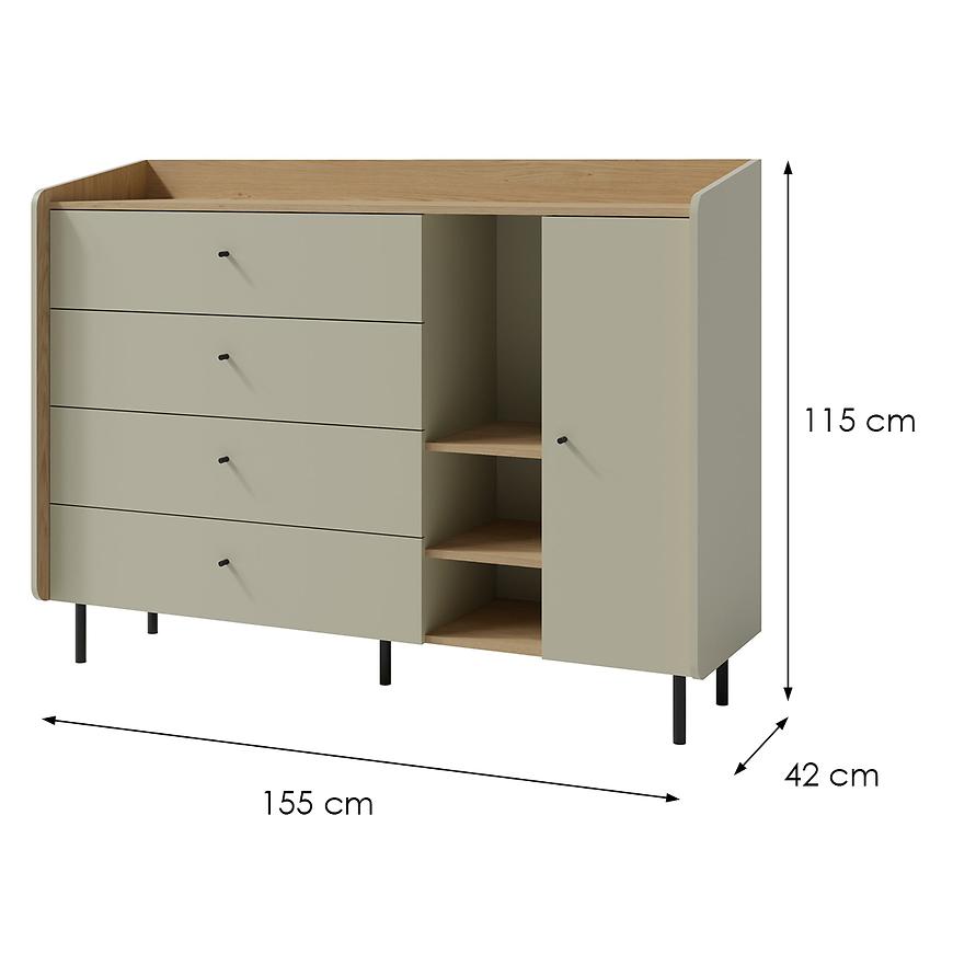 - Komoda Alessio AE7 4S1D Eukaliptus/Dąb Baltic