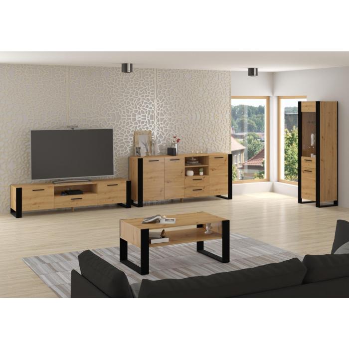Nowoczesne, stylowe meble z kolekcji Alston świetnie wpiszą się w klasyczne wnętrza w stylu modernistycznym czy industrialnym. Meble wykonane są z płyty laminowanej w połączeniu z ABS oraz płytą HDF. Projekt całej kolekcji nie tylko jest bardzo funkcjonalny, ale został także przemyślany pod kątem ciekawego designu. Cała konstrukcja wsparta jest na płozach, które zapewniają stabilność mebla i ciekawy element dekoracyjny w połączeniu z czarnymi uchwytami. Drewniany korpus i fronty delikatnie ocieplą wnętrze.
