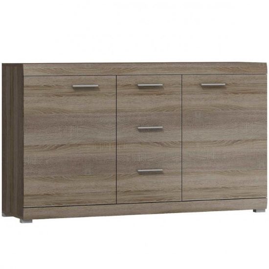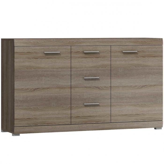 Doskonałym wyborem do pokoju dziennego będzie komoda w kolorze dąb truflowy z serii Alvaro, materiał wykonania to płyta meblowa. Komoda posiada szafki i szuflady dzięki czemu ma łatwy dostęp do wnętrza. Komoda dopełni również wystrój salonu, czy przedpokoju, stanowiąc wygodne miejsce do przechowywania mniejszych i większych rzeczy. Mebel do samodzielnego montażu.