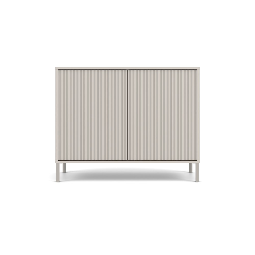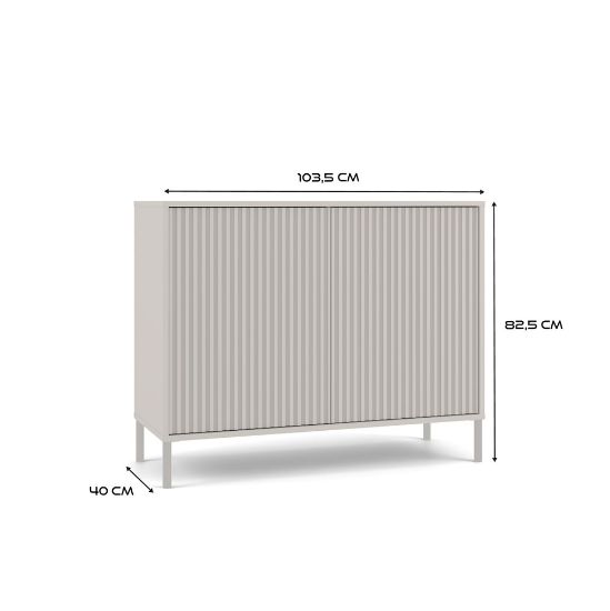 Komoda Amaro 2D to stylowy mebel, który doskonale wpisuje się w nowoczesne wnętrza, łącząc minimalistyczny design z wysoką jakością wykonania. Jej elegancki kolor kaszmir nadaje aranżacji subtelnego charakteru, a połączenie gładkich i ryflowanych frontów tworzy unikalny efekt wizualny.