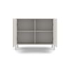 Komoda Amaro 2D stoi na metalowych nogach o wysokości 13,5 cm, które nie tylko podkreślają jej nowoczesny charakter, ale także ułatwiają utrzymanie czystości pod meblem. Całkowita wysokość komody wynosi 82,5 cm, co czyni ją praktycznym wyborem do salonu, sypialni czy przedpokoju.