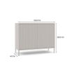 Korpus wykonany z laminowanej płyty wiórowej o grubości 16 mm zapewnia trwałość i odporność na codzienne użytkowanie. Ryflowane fronty drzwi z frezowanej płyty MDF, pokrytej melaminą i oklejonej folią, dodają meblowi wyjątkowej estetyki. Wysokiej jakości metalowe zawiasy umożliwiają precyzyjną regulację, zapewniając komfortowe użytkowanie.