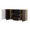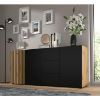 Komoda została wykonana korpus i czarne fronty z płyty laminowanej 16 mm, obrzeża wykończone ABS 0,6 mm, front lamele to płyta MDF 22 mm. Mebel posiada trzy zamknięte szafki oraz trzy szuflady. Meble z serii Amel są bardzo pojemne, dlatego sprawdzą się w każdym pomieszczeniu - zarówno w sypialni, pokoju dziennym, młodzieżowym, czy też salonie. Mebel do samodzielnego montażu.