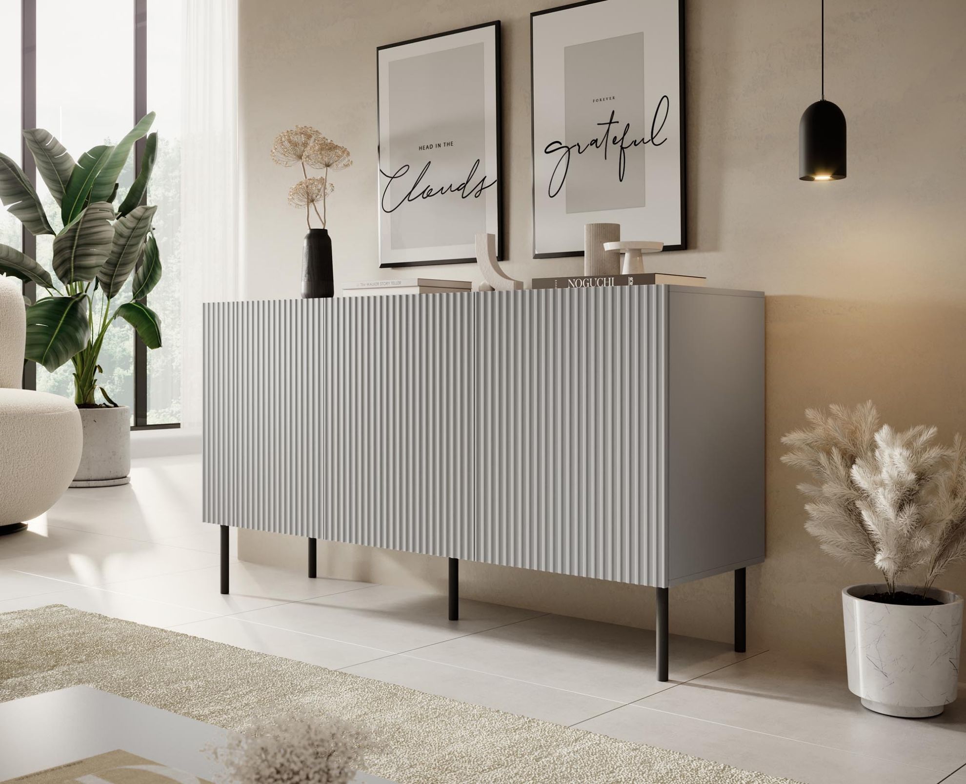 Komoda Anet w delikatnym odcieniu jasnej szarości z czarnymi metalowymi nóżkami to idealny wybór dla tych, którzy cenią sobie nowoczesny design połączony z funkcjonalnością. Wykonana z wysokiej jakości materiałów, komoda ta wyróżnia się nie tylko estetycznym wyglądem, ale także solidną konstrukcją.