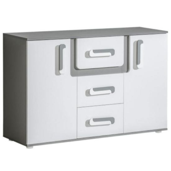 Doskonałym wyborem do pokoju dziennego będzie komoda w kolorze antracyt/biały z serii Apetito, materiał wykonania to płyta laminowana. Komoda posiada szafki i szuflady, dzięki czemu ma łatwy dostęp do wnętrza. Komoda dopełni również wystrój salonu, czy przedpokoju, stanowiąc wygodne miejsce do przechowywania mniejszych i większych rzeczy. Mebel do samodzielnego montażu.