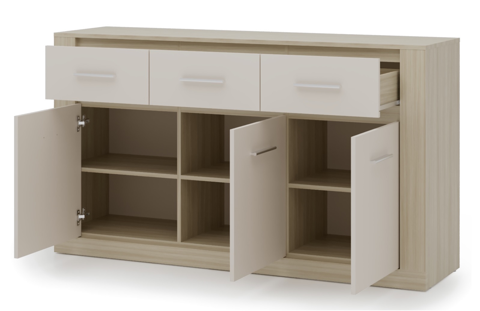 Pojemna komoda z 3 drzwiami i 3 szufladami – praktyczne przechowywanie