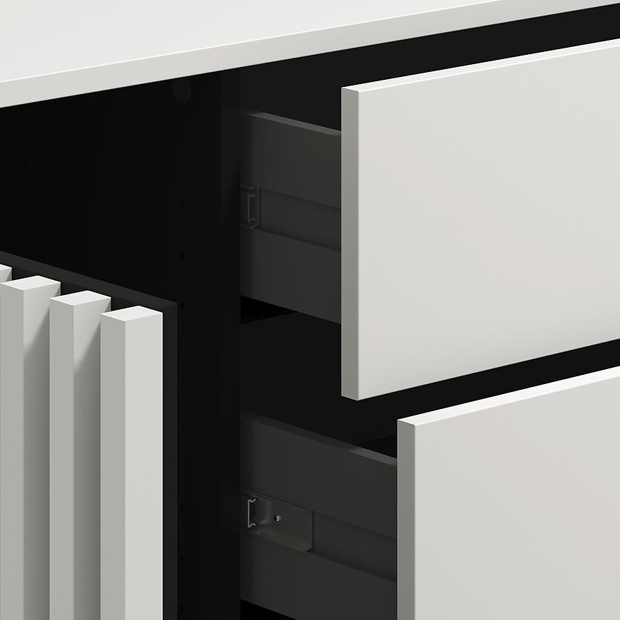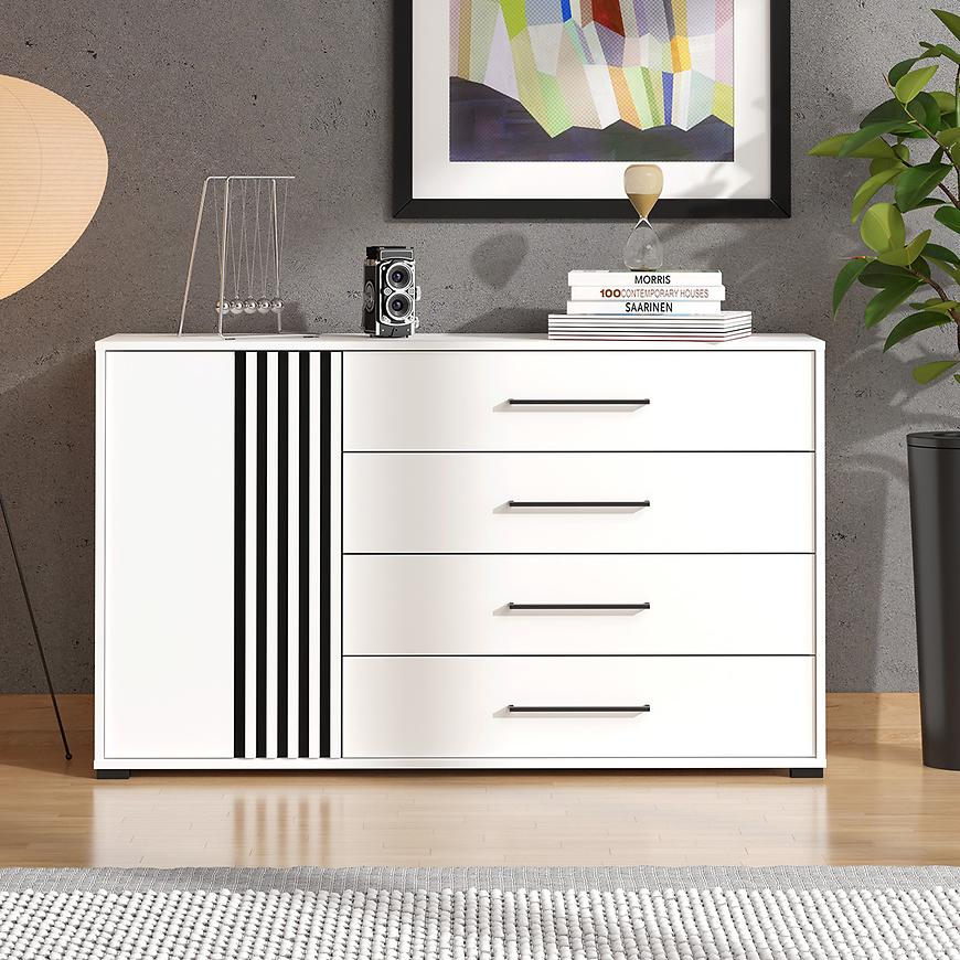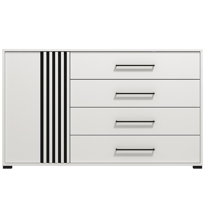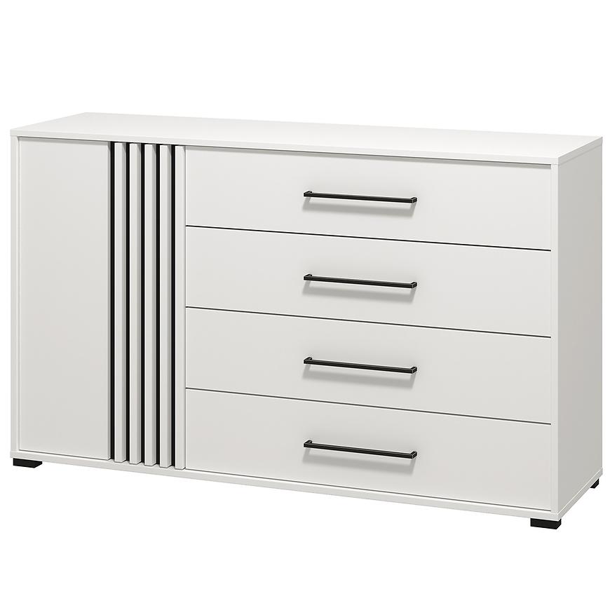 Kolor biały dodaje wnętrzu przytulności, a matowe wykończenie podkreśla nowoczesny charakter mebla. Komoda Ascalon doskonale sprawdzi się w salonie, sypialni czy przedpokoju – oferując wygodną przestrzeń do przechowywania oraz estetyczny wygląd, który podkreśli styl aranżacji.