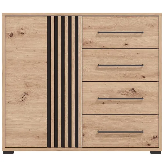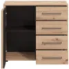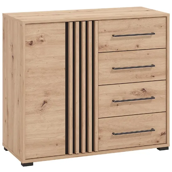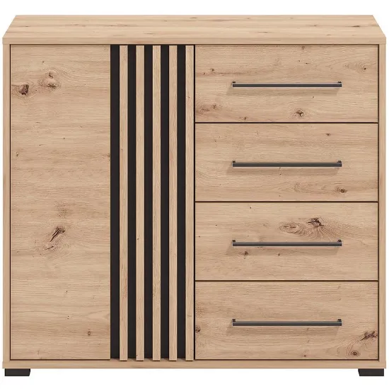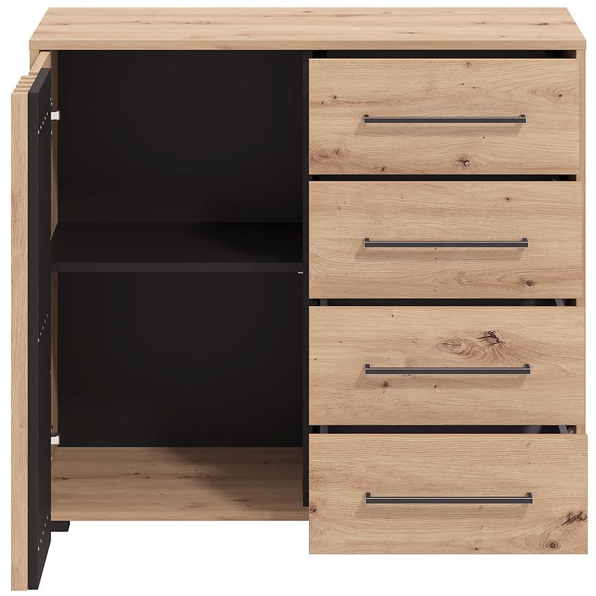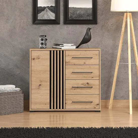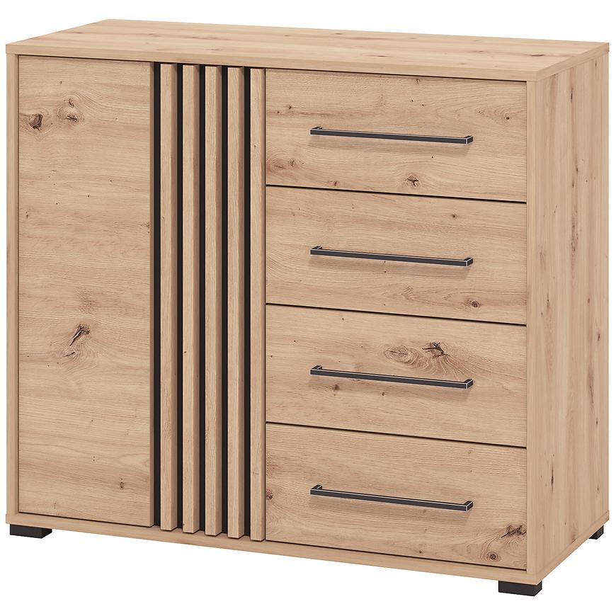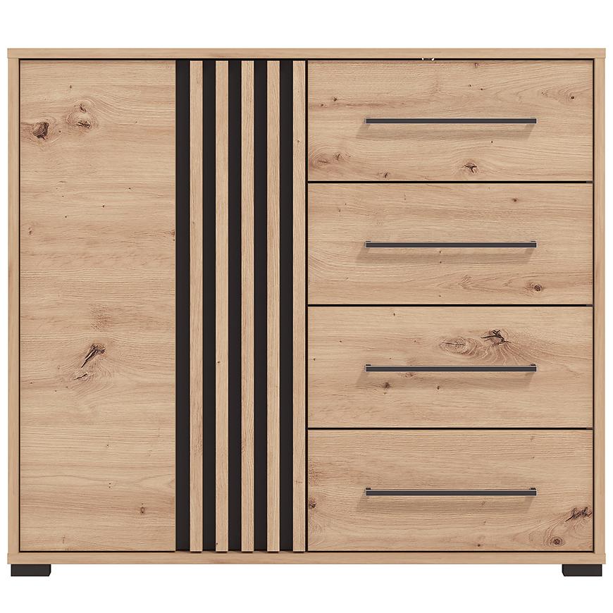 Komoda Ascalon z kolekcji ASCALON to idealna propozycja dla miłośników nowoczesnych, a zarazem ciepłych i przytulnych wnętrz. Wykonana z solidnej płyty wiórowej laminowanej, wyróżnia się trwałością i starannym wykonaniem, co czyni ją nie tylko estetycznym, ale i praktycznym elementem wyposażenia każdego domu.