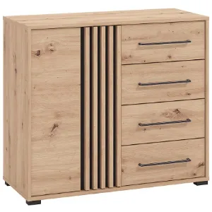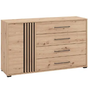 Komoda Ascalon z kolekcji ASCALON to idealna propozycja dla miłośników nowoczesnych, a zarazem ciepłych i przytulnych wnętrz. Wykonana z solidnej płyty wiórowej laminowanej, wyróżnia się trwałością i starannym wykonaniem, co czyni ją nie tylko estetycznym, ale i praktycznym elementem wyposażenia każdego domu.