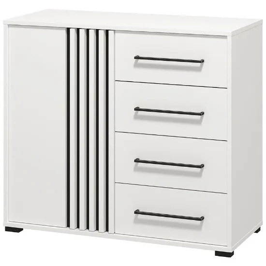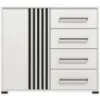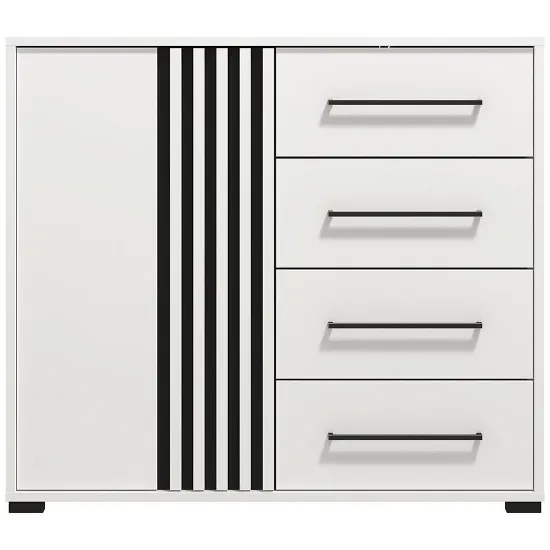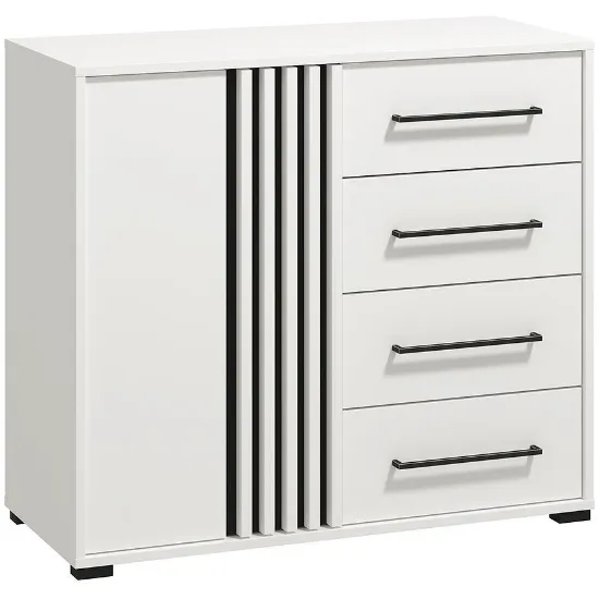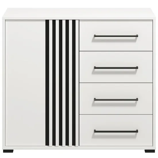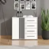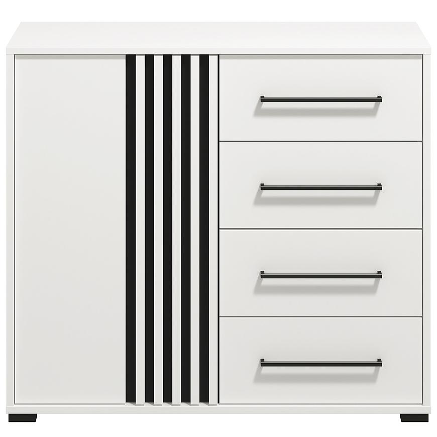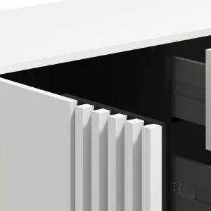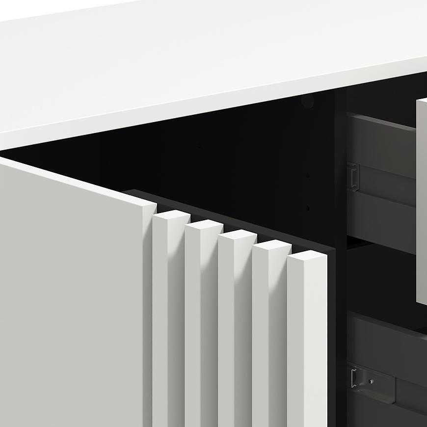 Kolor biały dodaje wnętrzu przytulności, a matowe wykończenie podkreśla nowoczesny charakter mebla. Komoda Ascalon doskonale sprawdzi się w salonie, sypialni czy przedpokoju – oferując wygodną przestrzeń do przechowywania oraz estetyczny wygląd, który podkreśli styl aranżacji.