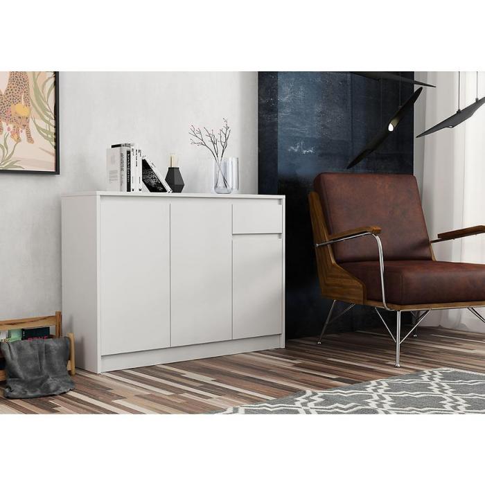Doskonałym wyborem do pokoju dziennego będzie komoda w kolorze białym z serii Aston, materiał wykonania to płyta laminowana. Komoda z kolekcji Aston idealnie wpasuje się w nowoczesne jak i klasyczne wnętrza. Komoda jest praktyczna i pojemna. Komoda posiada drzwiczki oraz szuflady, dzięki czemu ma łatwy dostęp do wnętrza. Komoda dopełni również wystrój salonu, czy przedpokoju, stanowiąc wygodne miejsce do przechowywania mniejszych i większych rzeczy. Mebel do samodzielnego montażu.