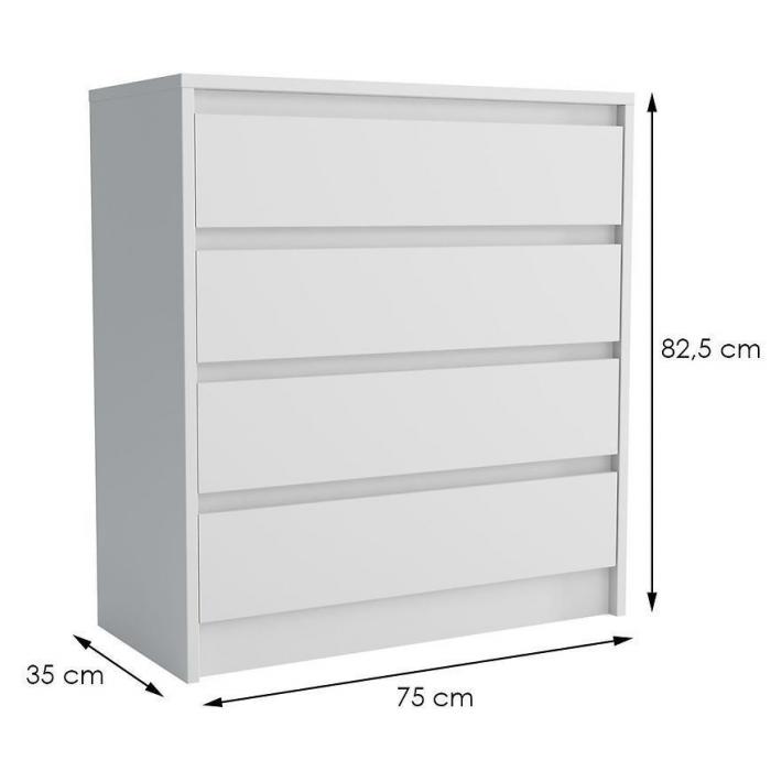 Doskonałym wyborem do pokoju dziennego będzie komoda w kolorze białym z serii Aston, materiał wykonania to płyta laminowana. Komoda z kolekcji Aston idealnie wpasuje się w nowoczesne jak i klasyczne wnętrza. Komoda jest praktyczna i pojemna. Komoda posiada szuflady, dzięki czemu ma łatwy dostęp do wnętrza. Komoda dopełni również wystrój salonu, czy przedpokoju, stanowiąc wygodne miejsce do przechowywania mniejszych i większych rzeczy. Mebel do samodzielnego montażu.