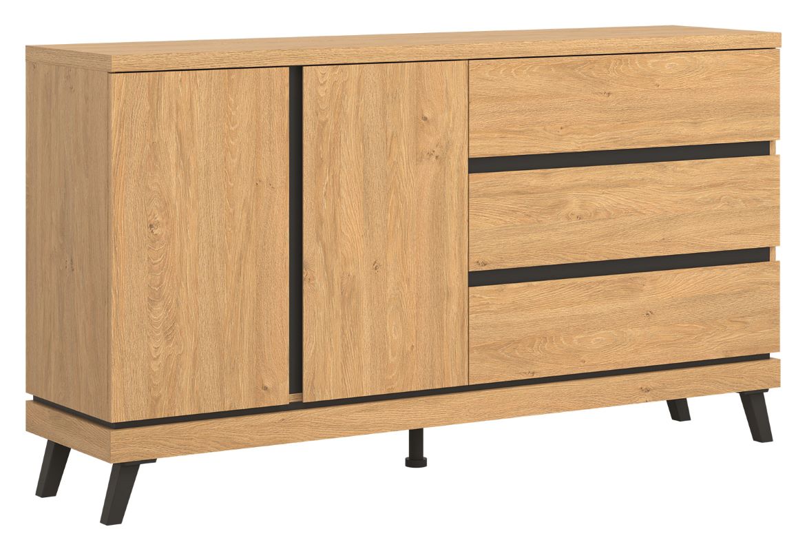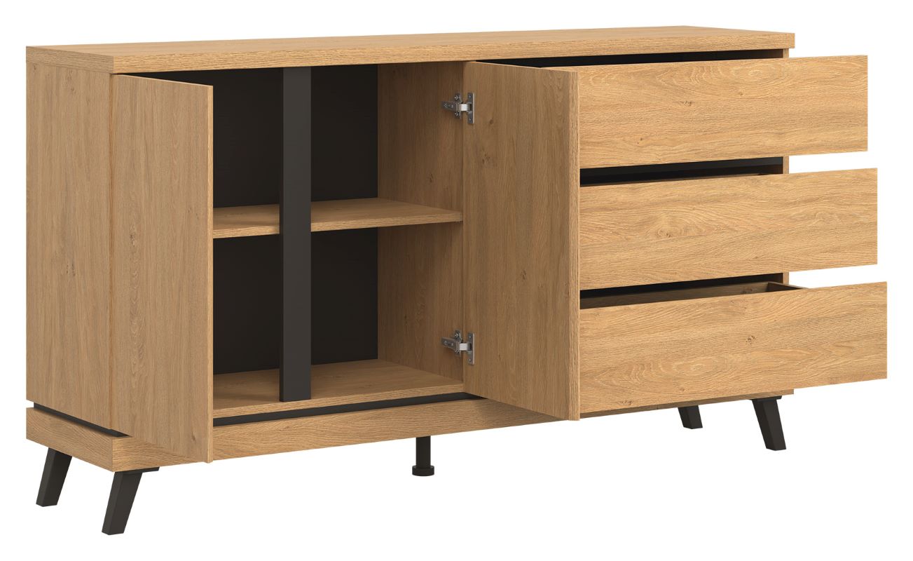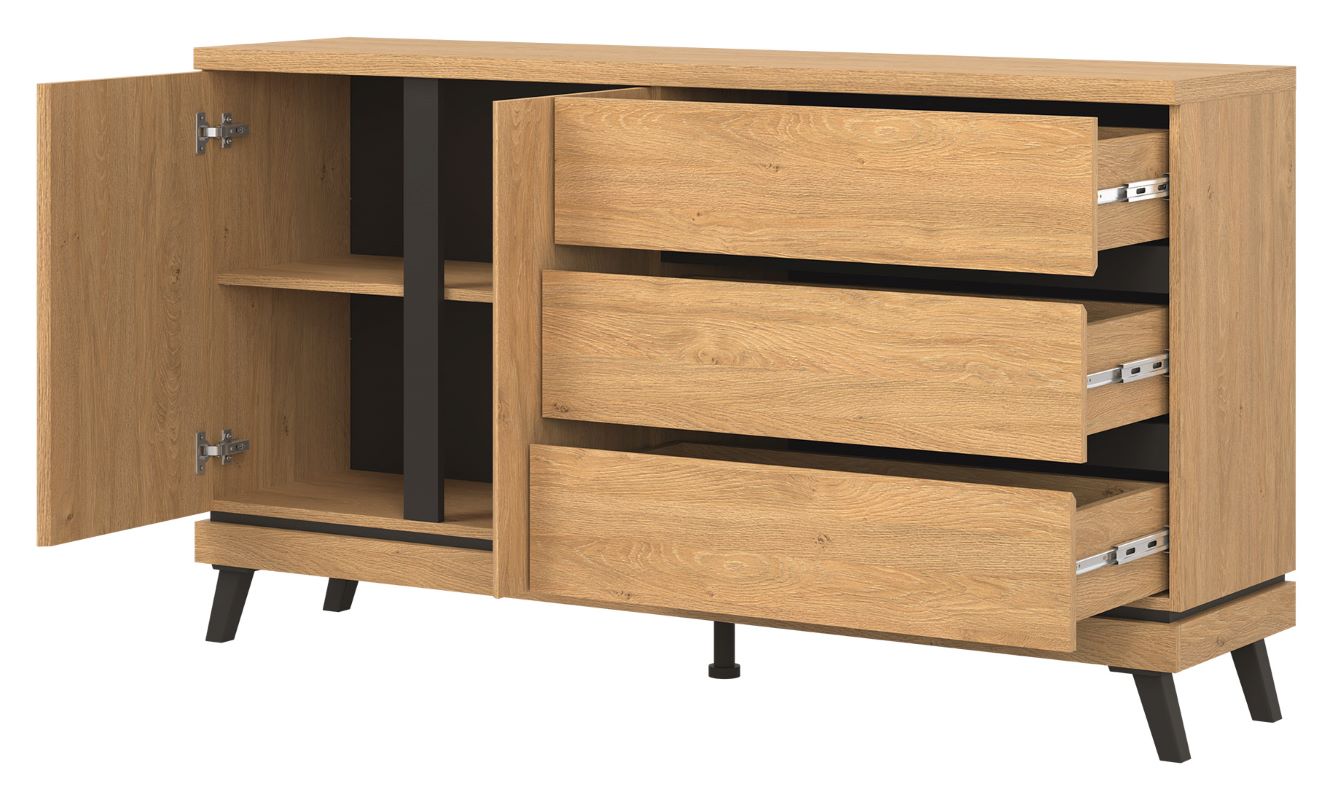 Kolekcja ATE utrzymana jest w modnym kolorze dąb kamienny, który w połączeniu z czarnymi wstawkami zapewnia kontrastowe połączenie, które przyciąga uwagę i nadaje pomieszczeniu elegancji.