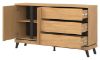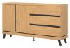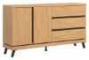Mebel otwiera się za pomocą specjalnie wyprofilowanych żłobień na obrzeżu frontu. Komoda idealnie sprawdzi się w konfiguracji z innymi bryłami z serii ATE lub jako pojedynczy mebel, który można dopasować do własnej aranżacji pomieszczenia.
